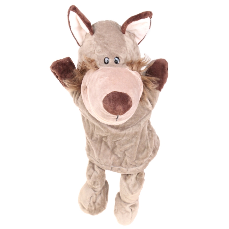 Plyšový maňuška s nohami na ruku vlk