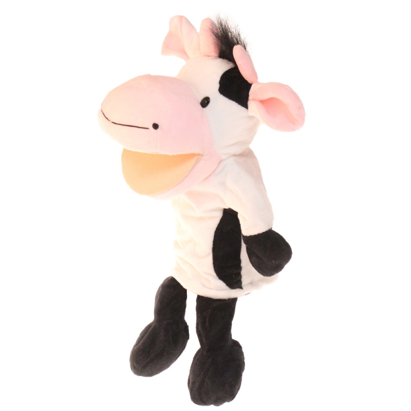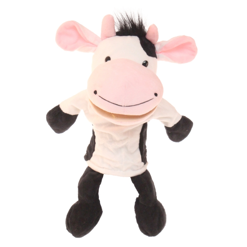 Plyšový maňuška s nohami na ruku kravička