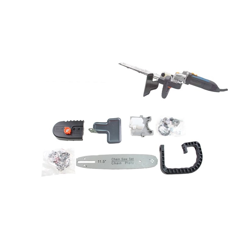 - Adaptér na uhlovú brúsku, ktorá z nej urobí šikovnú motorovú pílu