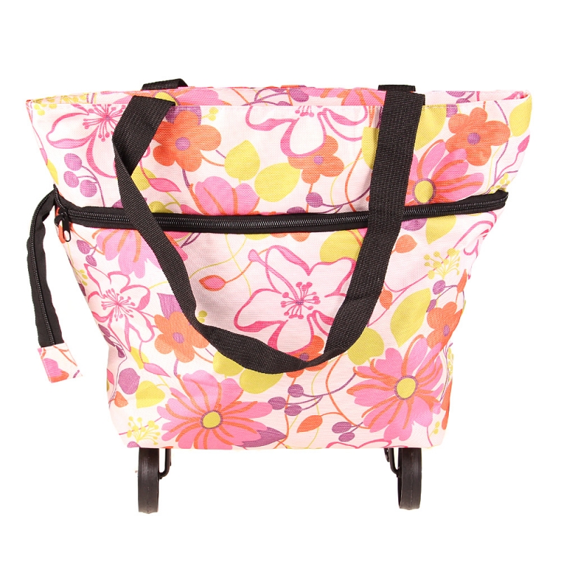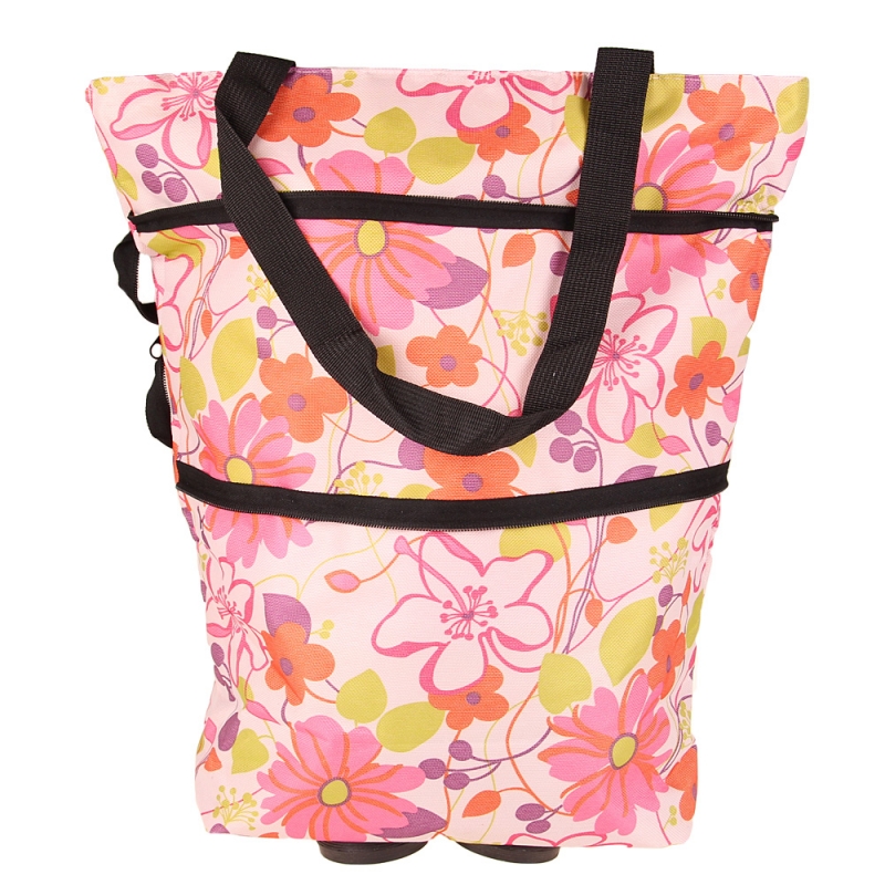 Nákupná taška s kolieskami ružové kvety
